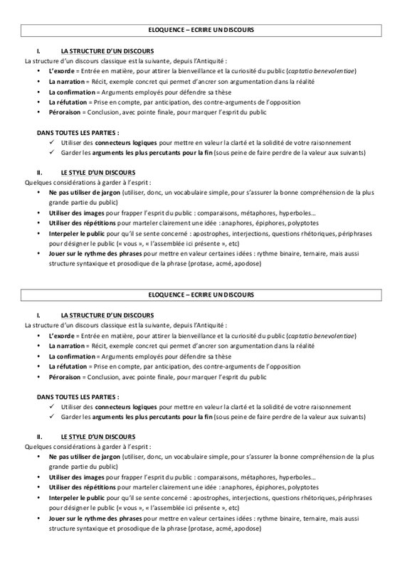 Fiche E Loquence Ecrire Un Discours