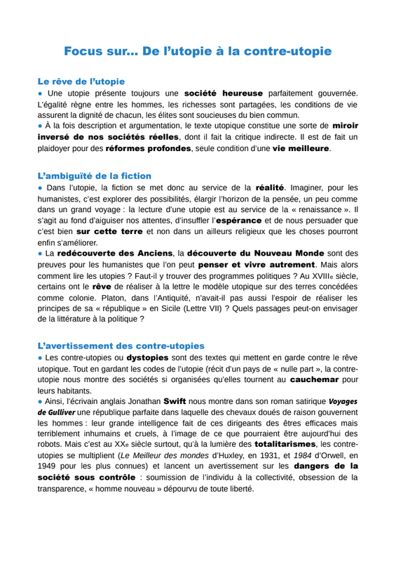 Pour pouvoir lire les annotations sur les copies (syntaxe, organisation du texte, vocabulaire, orthographe, récit / description et définition de l'utopie) profitables à tous, il faut :
