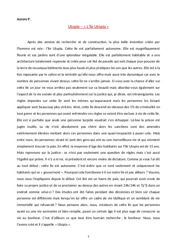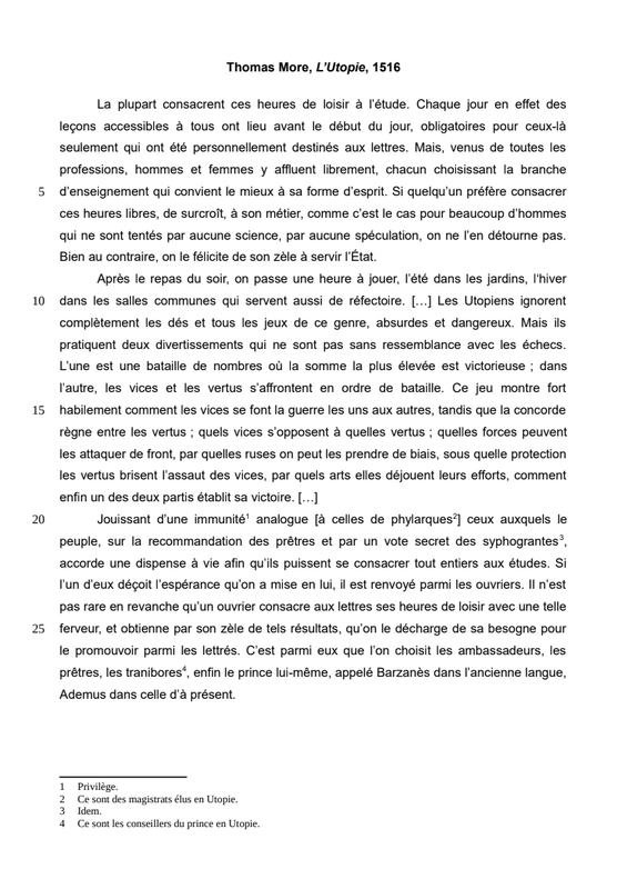 - cette liberté ne semble néanmoins pas totale car l'utopie de More semble en partie autoritaire : le temps de jeu des Utopiens par exemple semble strictement réglementé (l. 9)