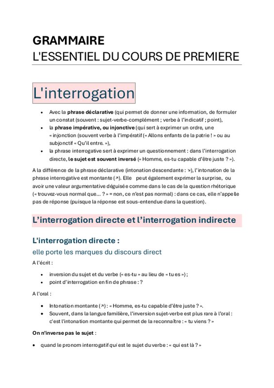 Si vous êtes interrogés sur l'interrogation, après avoir repéré s'il s'agit d'une interrogation directe ou indirecte, on attendra de vous que vous soyez capable de faire les tests de transformation de l'une à l'autre.