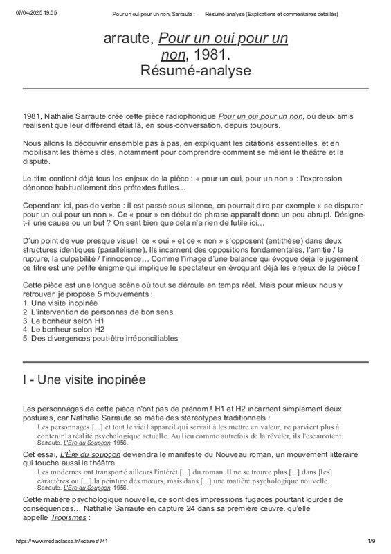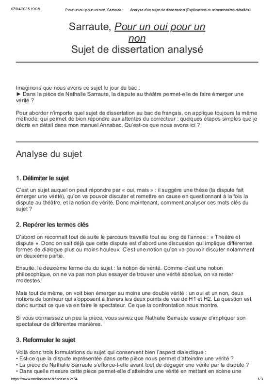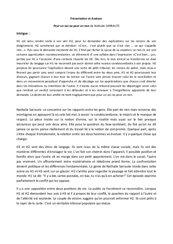 Presentation Et Analyse Pour Un Oui Ou P