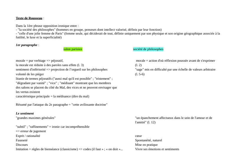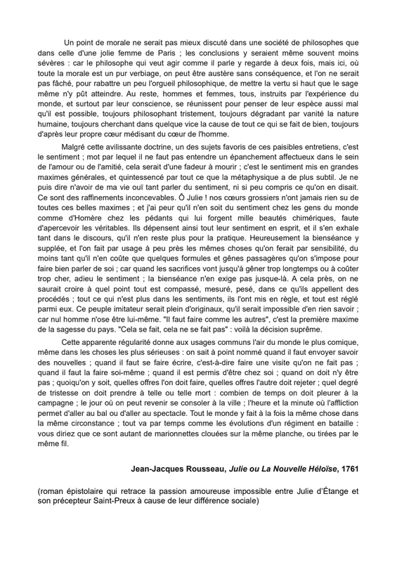 1) Repérez le vocabulaire de la sensibilité dans le texte de Rousseau. Que dénonce Rousseau dans cet extrait ?